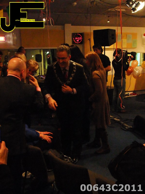 23-03-2011 Leen Huizer alias Lee Towers viert 65e verjaardag bij Radio Rijnmond