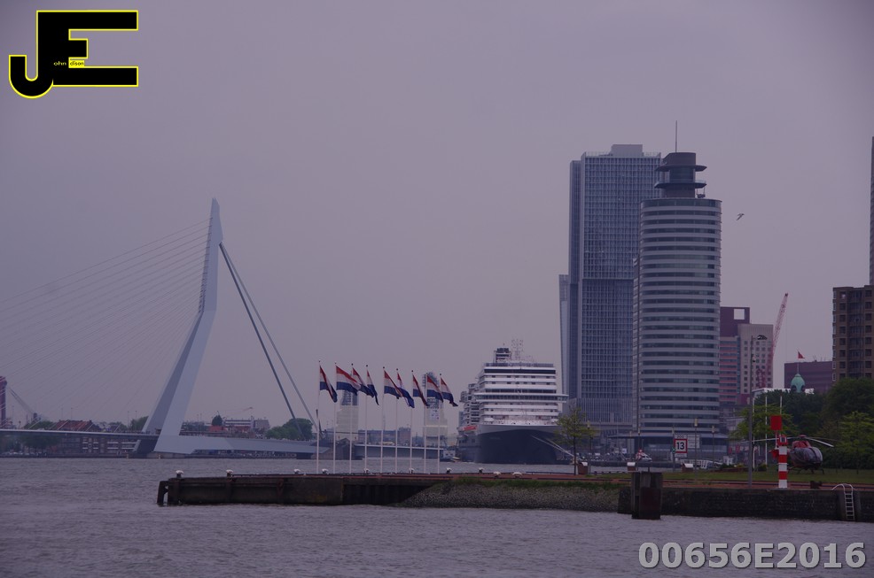 19-05-2016 Nieuw cruiseschip MS Koningsdam legt aan in Rotterdam bij Wilhelmina kade