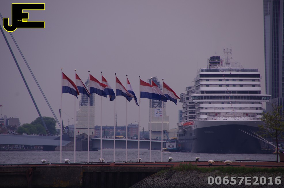 19-05-2016 Nieuw cruiseschip MS Koningsdam legt aan in Rotterdam bij Wilhelmina kade