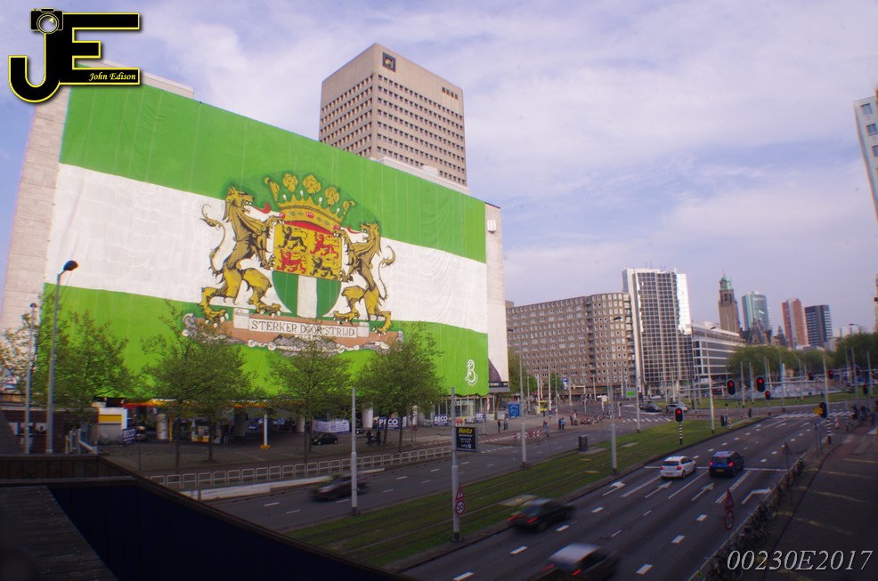 06-05-2017 Rotterdamse vlag van 80x41 meter over Shell gebouw Rotterdam