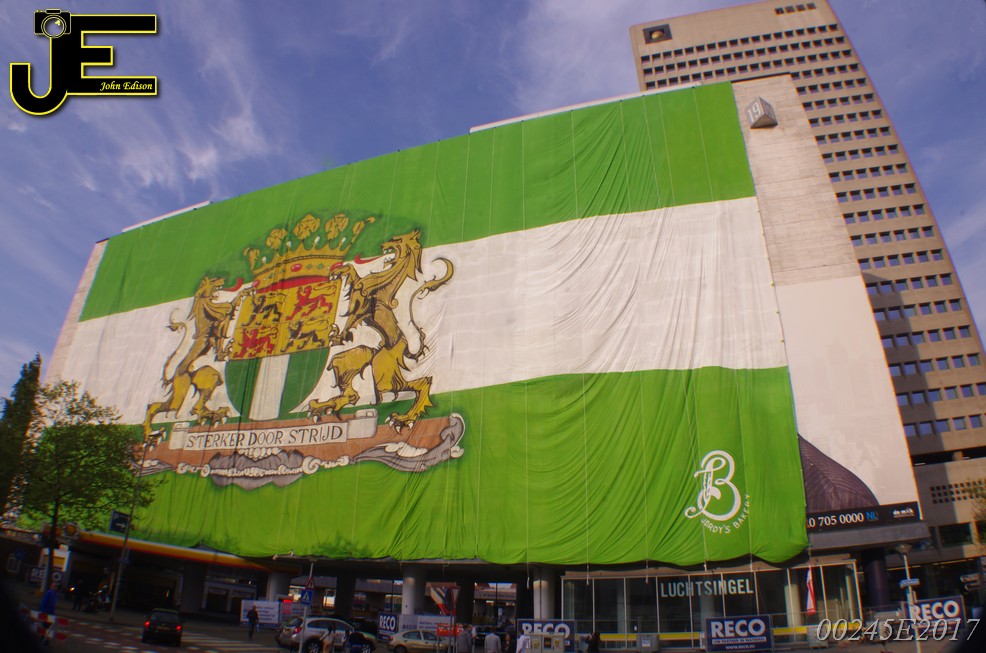 06-05-2017 Rotterdamse vlag van 80x41 meter over Shell gebouw Rotterdam