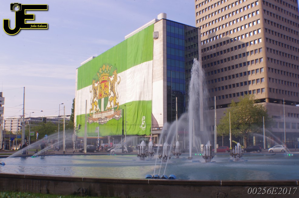 06-05-2017 Rotterdamse vlag van 80x41 meter over Shell gebouw Rotterdam