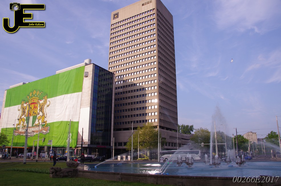 06-05-2017 Rotterdamse vlag van 80x41 meter over Shell gebouw Rotterdam