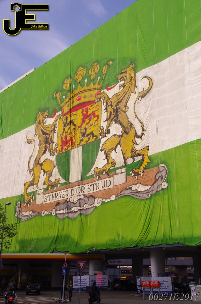 06-05-2017 Rotterdamse vlag van 80x41 meter over Shell gebouw Rotterdam