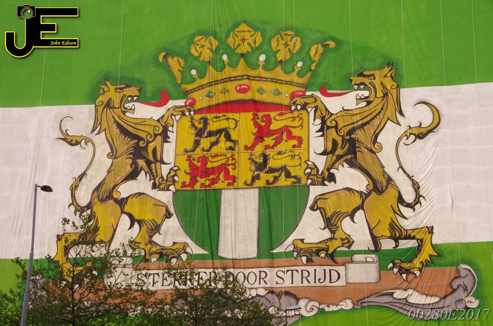 06-05-2017 Rotterdamse vlag van 80x41 meter over Shell gebouw Rotterdam