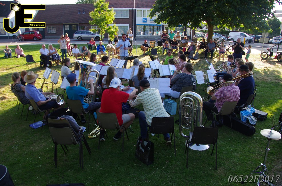 17-06-2017 Tuinstoelenconcert Volharding bij beeld van Biggo in Rhoon