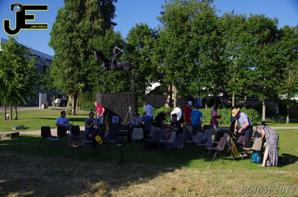 17-06-2017 Tuinstoelenconcert Volharding bij beeld van Biggo in Rhoon