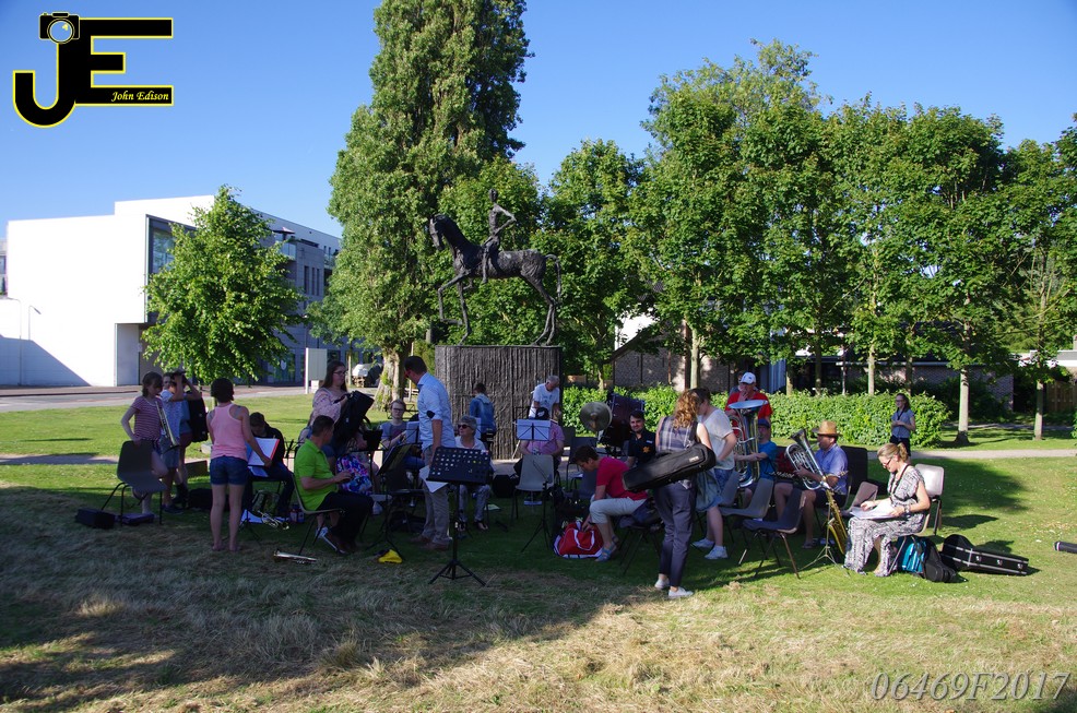 17-06-2017 Tuinstoelenconcert Volharding bij beeld van Biggo in Rhoon