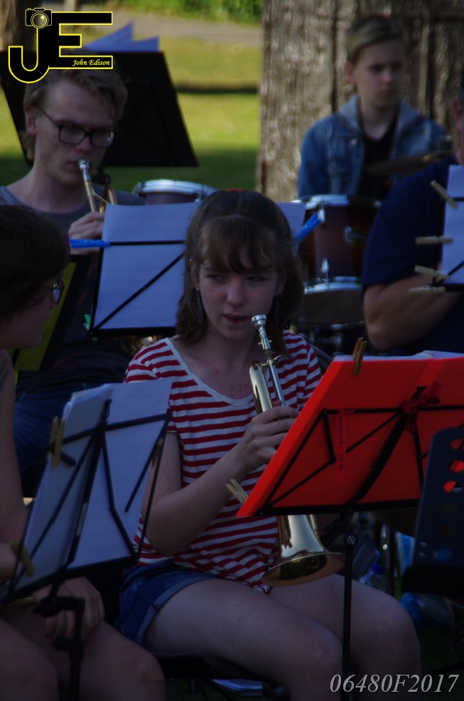17-06-2017 Tuinstoelenconcert Volharding bij beeld van Biggo in Rhoon