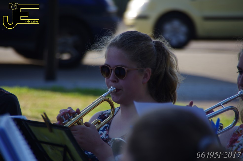 17-06-2017 Tuinstoelenconcert Volharding bij beeld van Biggo in Rhoon