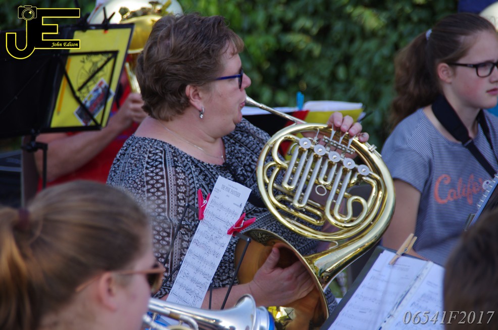 17-06-2017 Tuinstoelenconcert Volharding bij beeld van Biggo in Rhoon