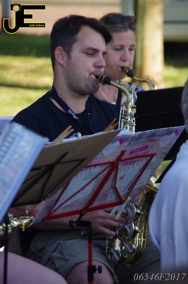 17-06-2017 Tuinstoelenconcert Volharding bij beeld van Biggo in Rhoon
