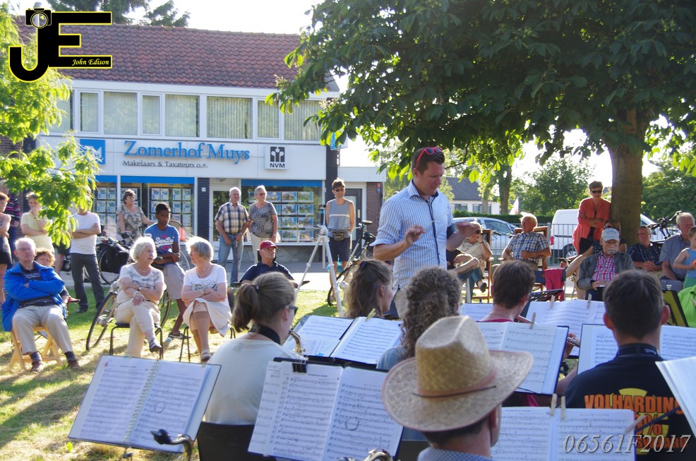 17-06-2017 Tuinstoelenconcert Volharding bij beeld van Biggo in Rhoon