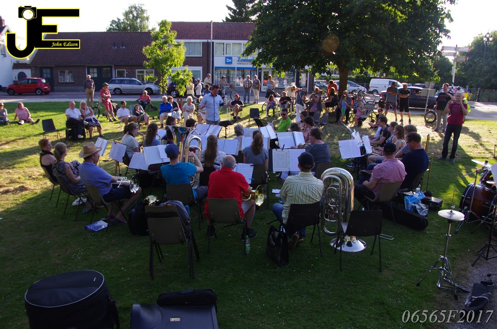 17-06-2017 Tuinstoelenconcert Volharding bij beeld van Biggo in Rhoon