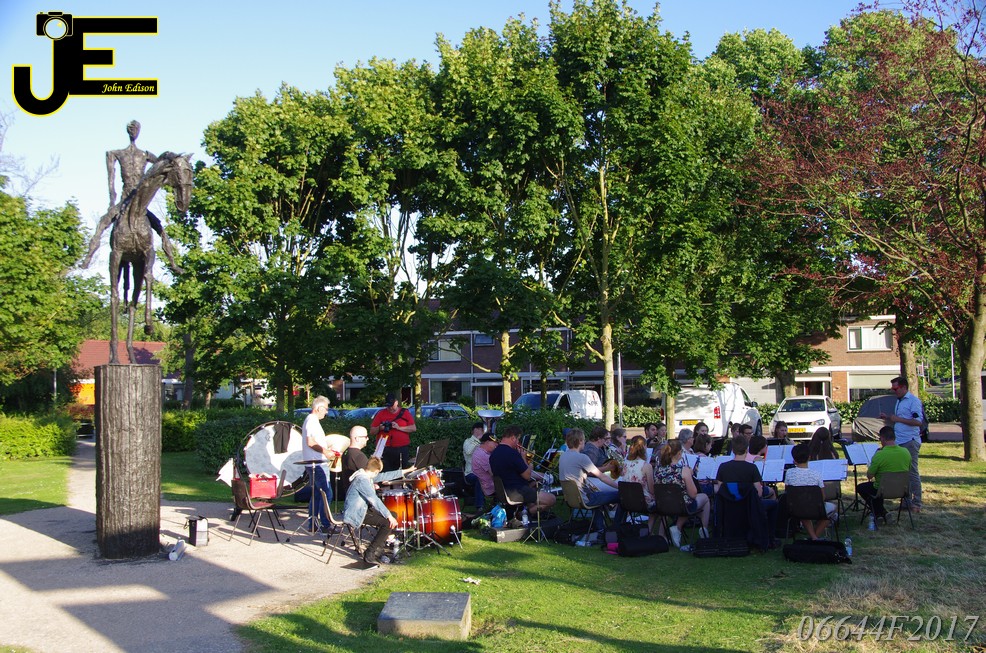 17-06-2017 Tuinstoelenconcert Volharding bij beeld van Biggo in Rhoon
