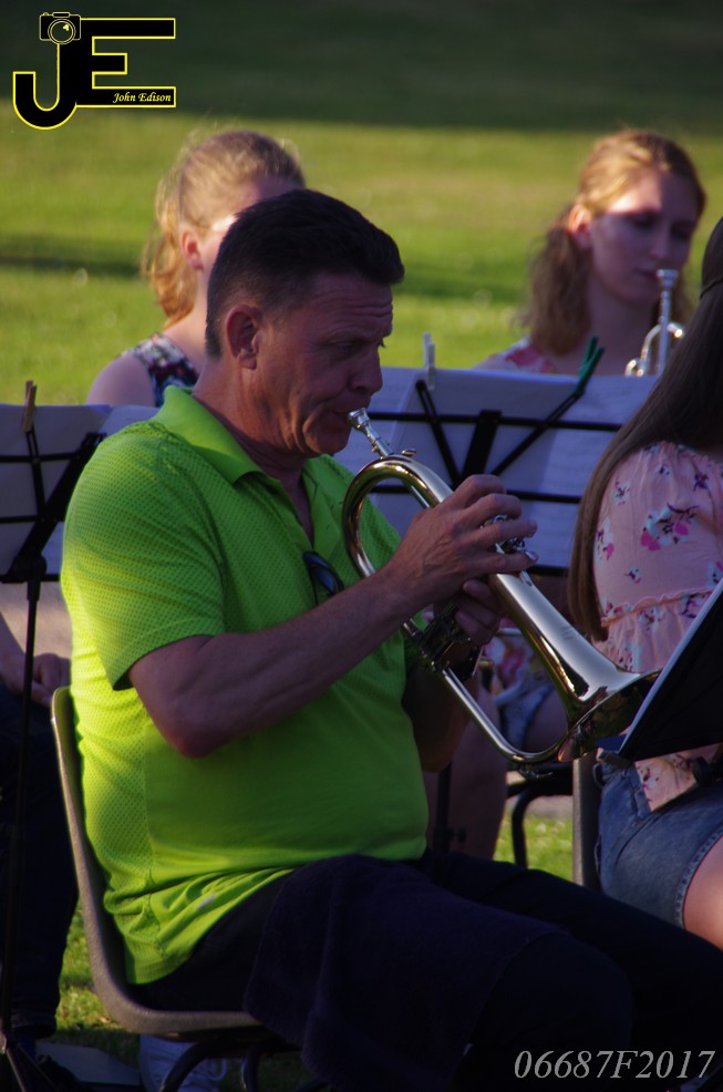 17-06-2017 Tuinstoelenconcert Volharding bij beeld van Biggo in Rhoon