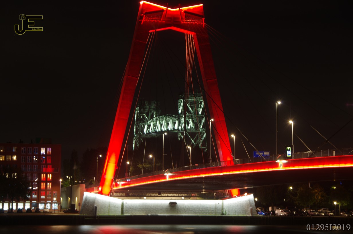 27-09-2019 Rotterdam Willemsbrug, Hef en Erasmusbrug bij nacht