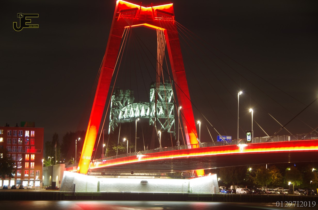 27-09-2019 Rotterdam Willemsbrug, Hef en Erasmusbrug bij nacht