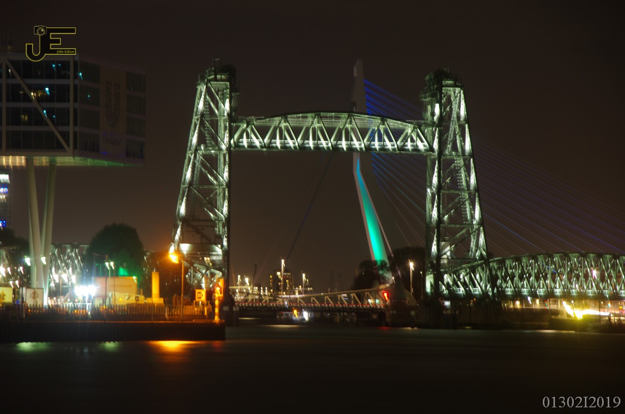 27-09-2019 Rotterdam Willemsbrug, Hef en Erasmusbrug bij nacht
