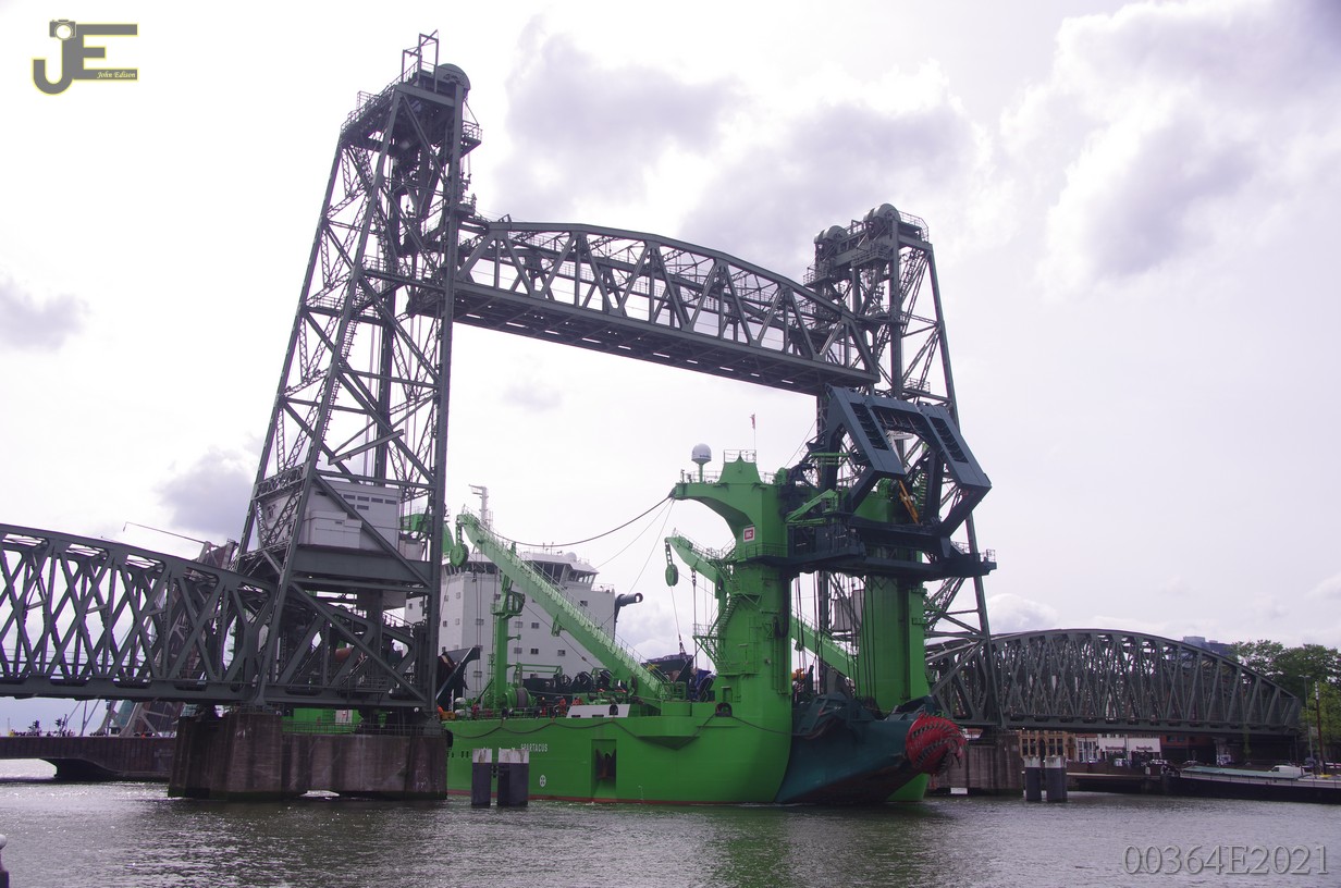 23-05-2021 Spartacus cutterzuiger baggerschip door de Erasmus - Koninginnenbrug en Hef