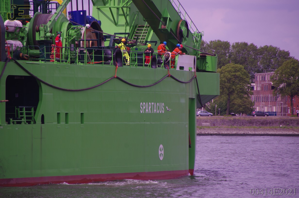 23-05-2021 Spartacus cutterzuiger baggerschip door de Erasmus - Koninginnenbrug en Hef