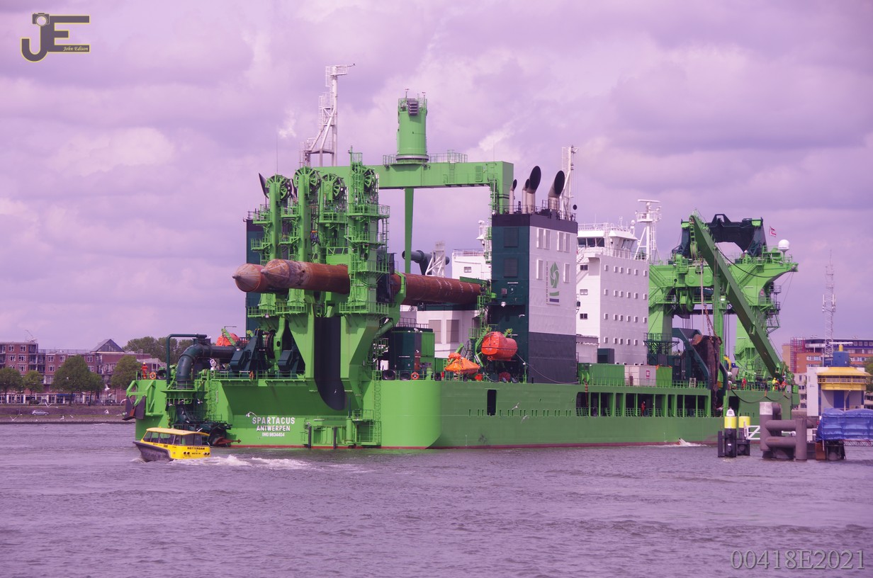 23-05-2021 Spartacus cutterzuiger baggerschip door de Erasmus - Koninginnenbrug en Hef