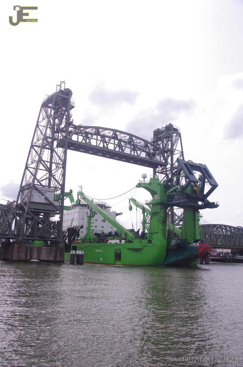 23-05-2021 Spartacus cutterzuiger baggerschip door de Erasmus - Koninginnenbrug en Hef