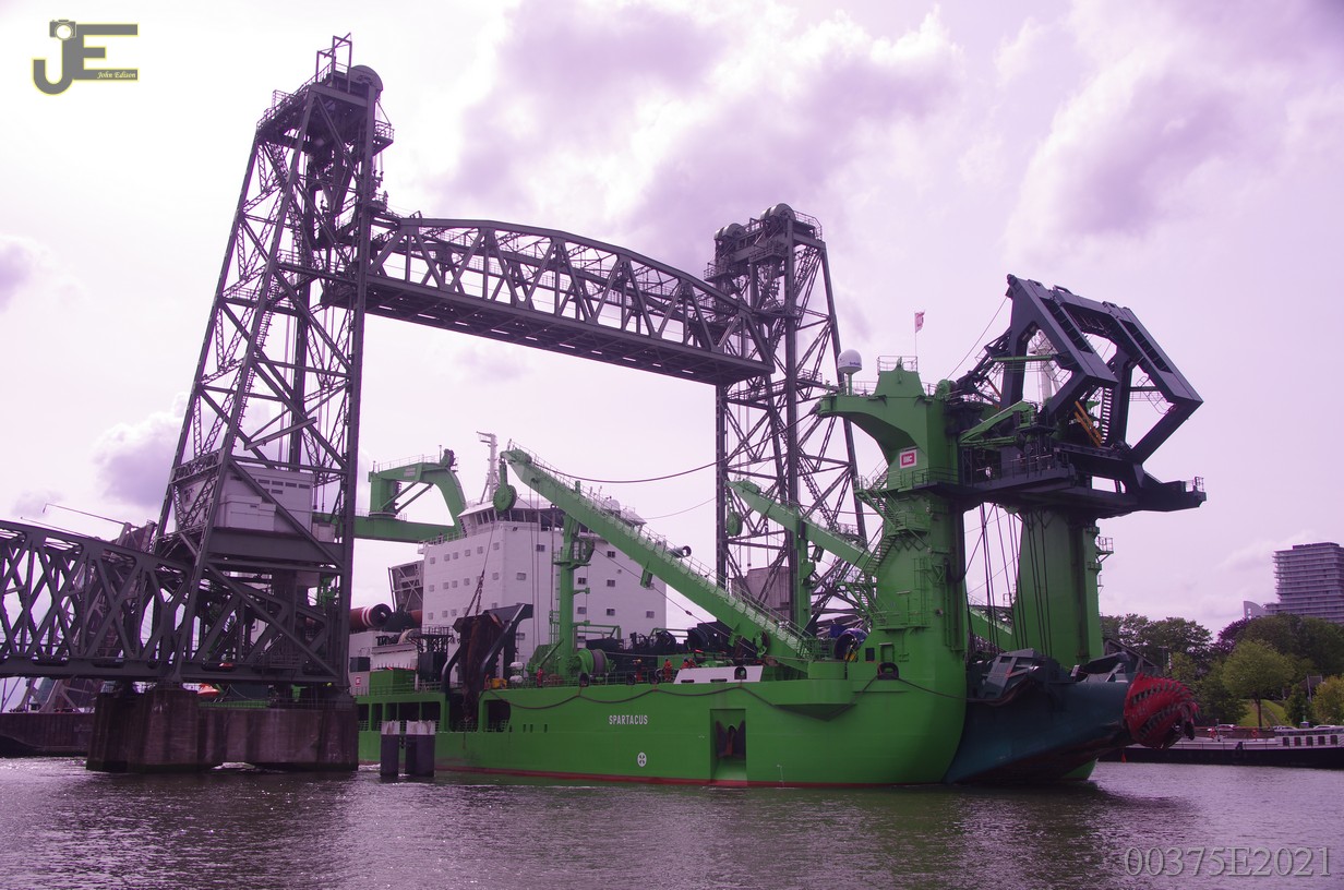 23-05-2021 Spartacus cutterzuiger baggerschip door de Erasmus - Koninginnenbrug en Hef