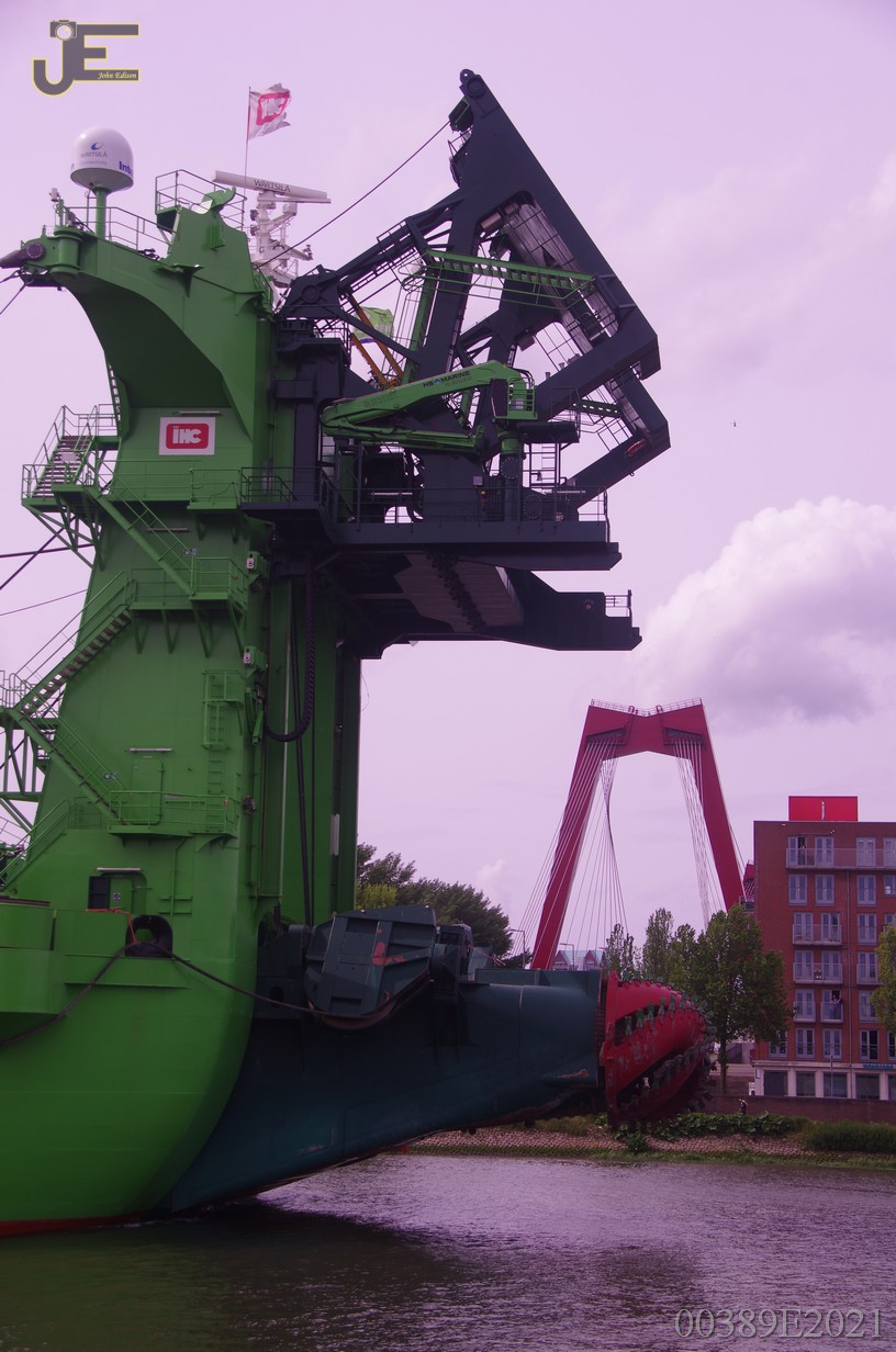 23-05-2021 Spartacus cutterzuiger baggerschip door de Erasmus - Koninginnenbrug en Hef