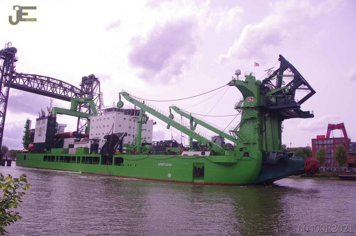 23-05-2021 Spartacus cutterzuiger baggerschip door de Erasmus - Koninginnenbrug en Hef