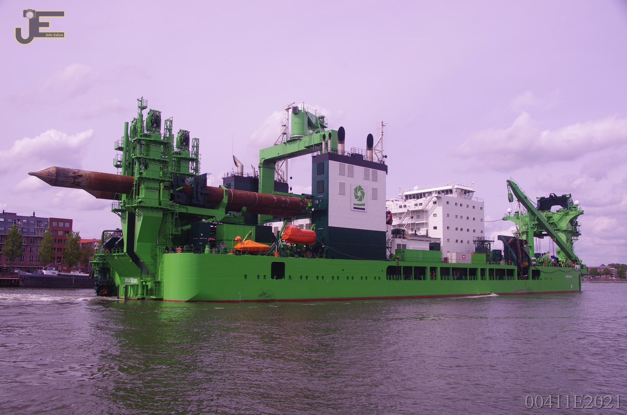 23-05-2021 Spartacus cutterzuiger baggerschip door de Erasmus - Koninginnenbrug en Hef