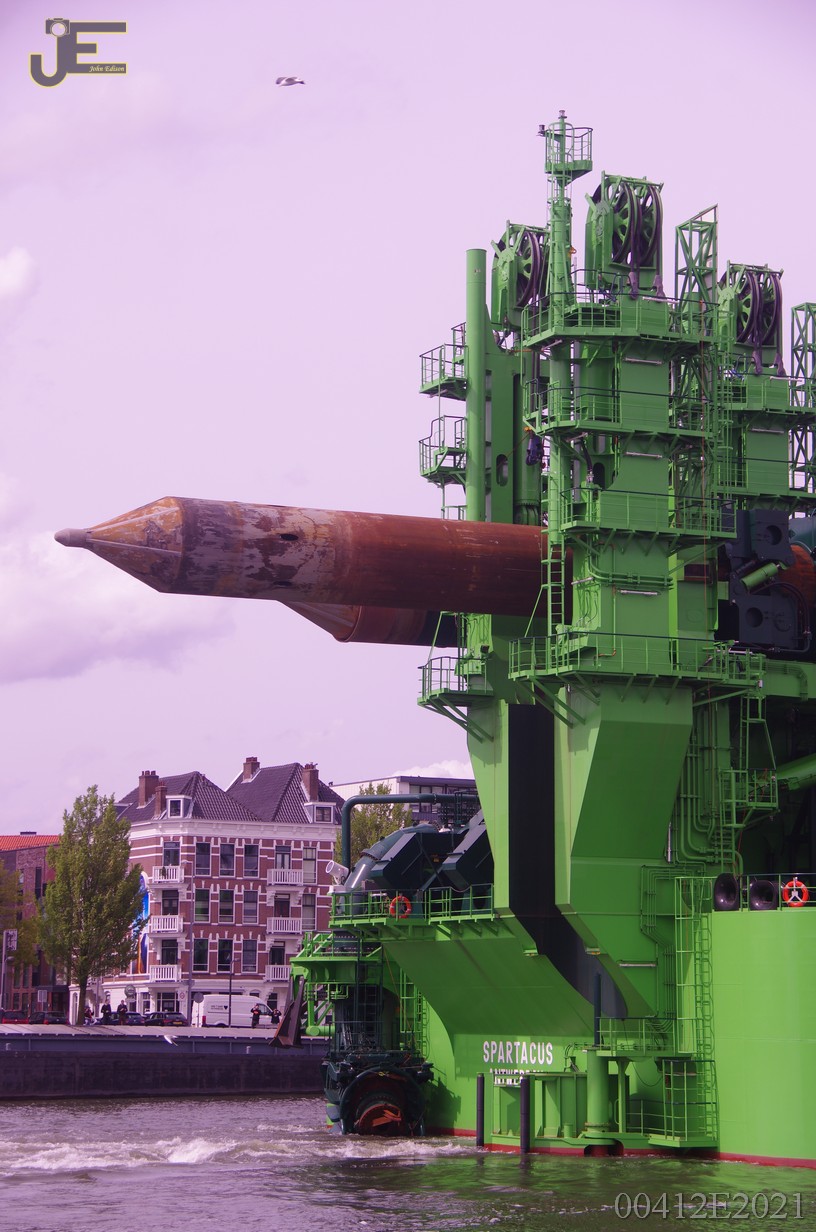 23-05-2021 Spartacus cutterzuiger baggerschip door de Erasmus - Koninginnenbrug en Hef