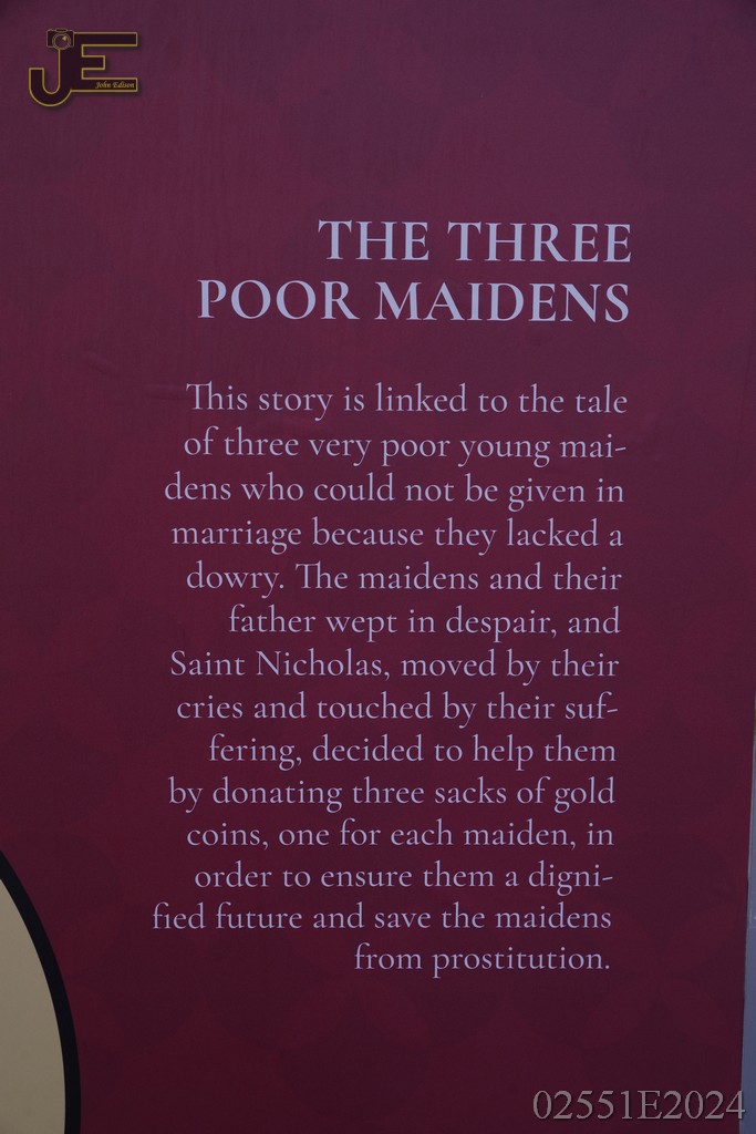 08-05-2024 Sint Nicolaas borden op winkelstraat met levensverhaal