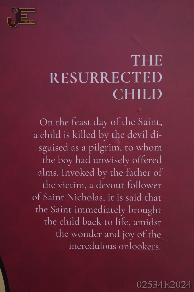 08-05-2024 Sint Nicolaas borden op winkelstraat met levensverhaal