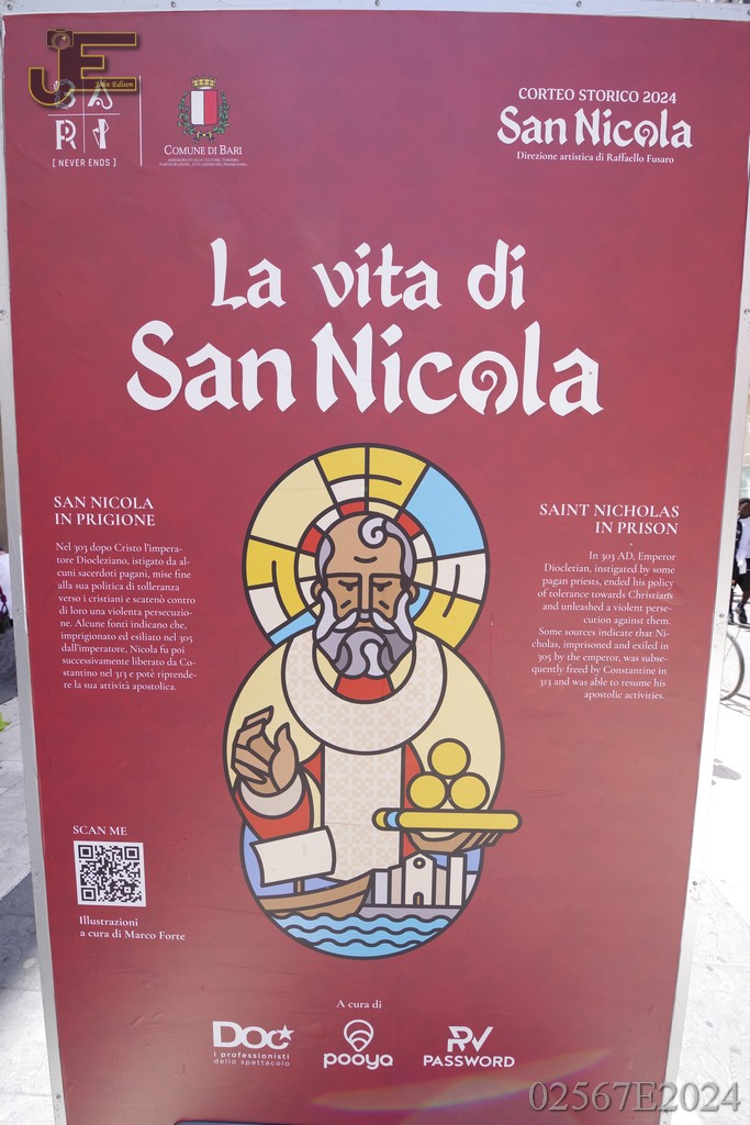 08-05-2024 Sint Nicolaas borden op winkelstraat met levensverhaal