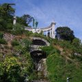 - Burcht van Boeda bovenop de berg nabij de kettingbrug (van afstand).