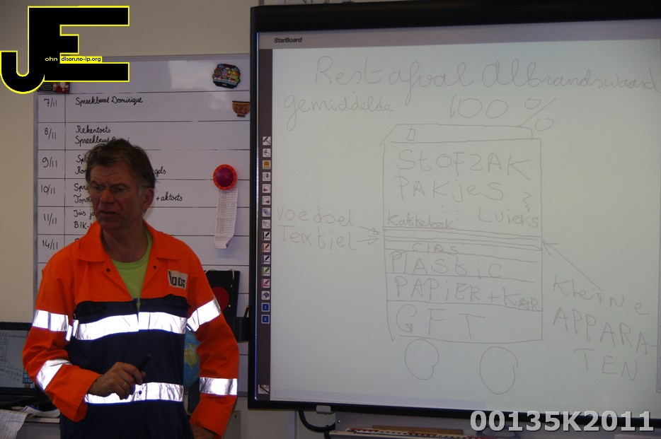 03-11-2011 Vuilnisman Koos geeft recycling les