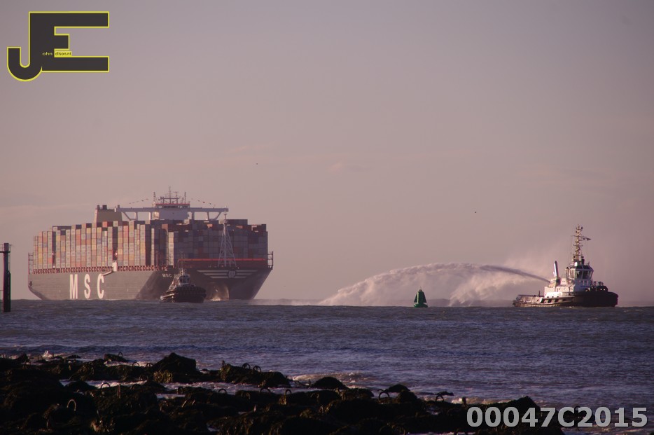 03-03-2015 Grootste containerschip ter wereld MSC bij 2e Maasvlakte