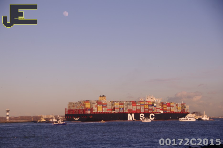 03-03-2015 Grootste containerschip ter wereld MSC bij 2e Maasvlakte