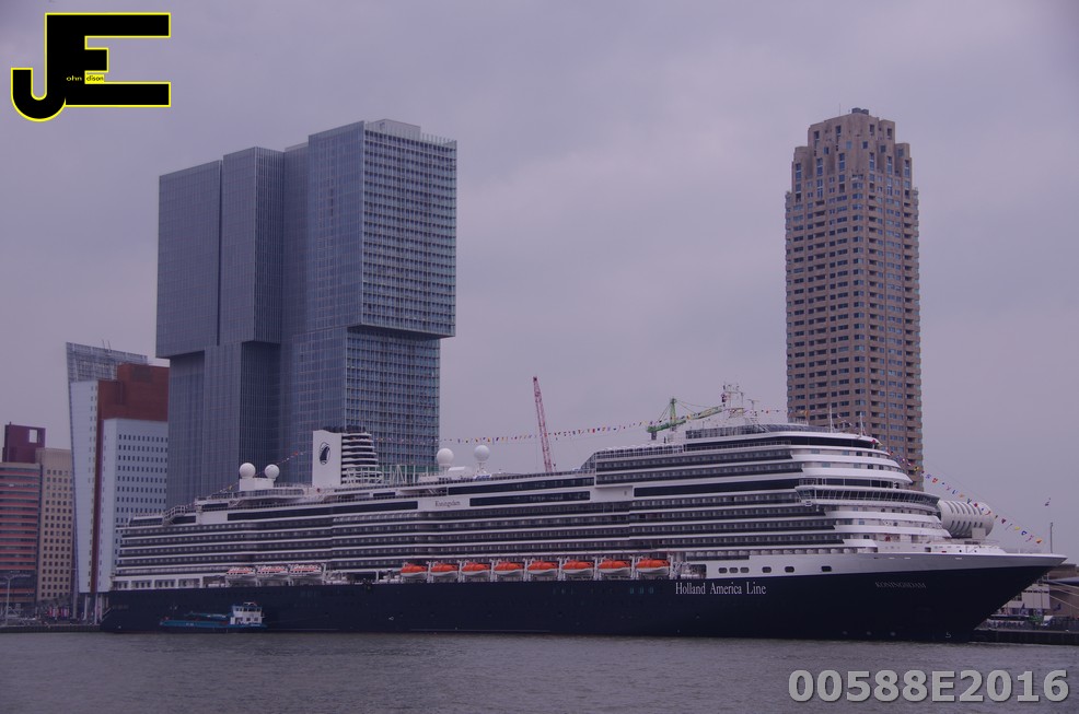 19-05-2016 Nieuw cruiseschip MS Koningsdam legt aan in Rotterdam bij Wilhelmina kade