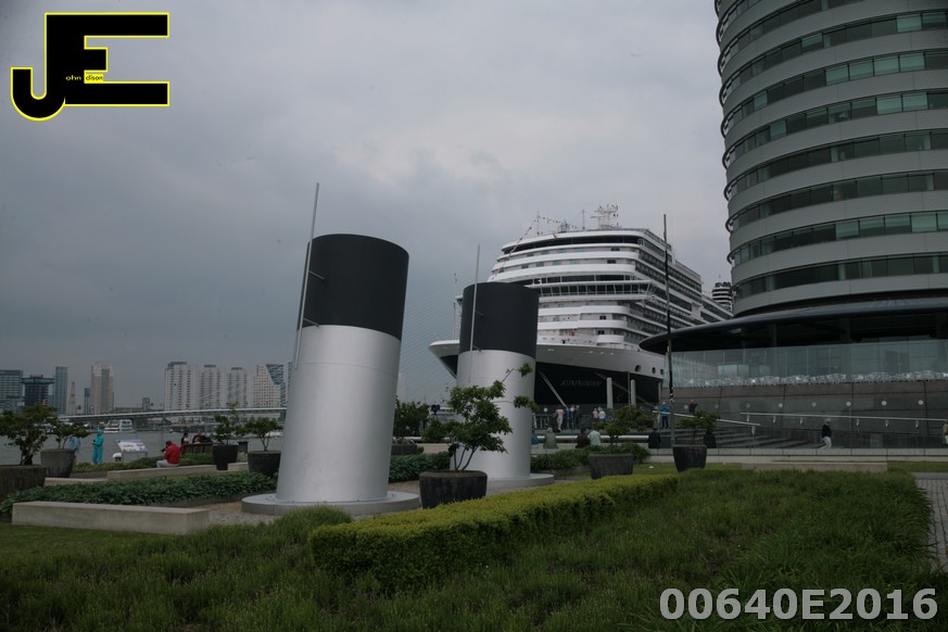 19-05-2016 Nieuw cruiseschip MS Koningsdam legt aan in Rotterdam bij Wilhelmina kade