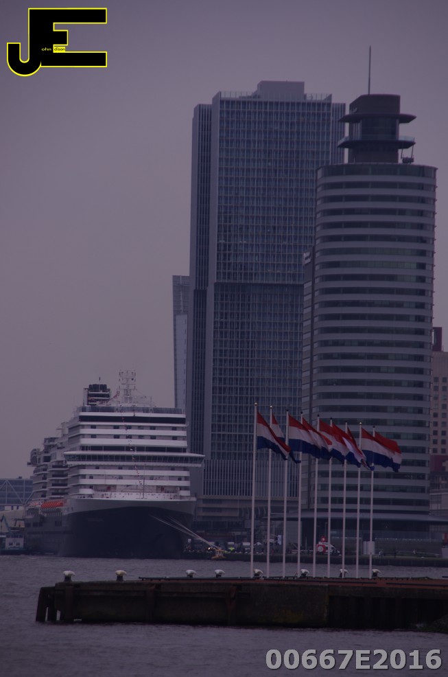 19-05-2016 Nieuw cruiseschip MS Koningsdam legt aan in Rotterdam bij Wilhelmina kade