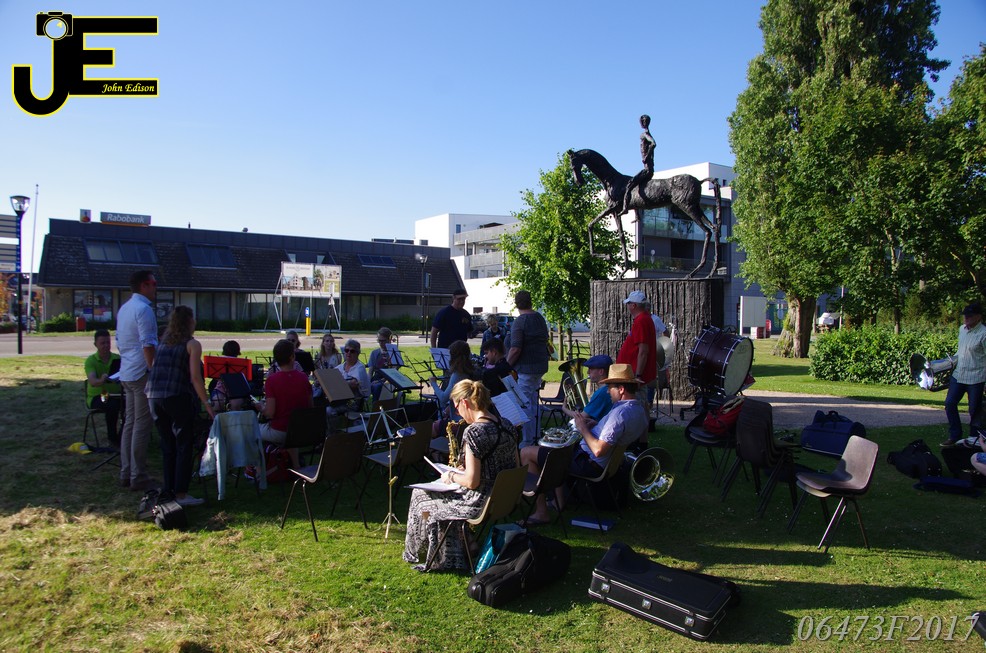 17-06-2017 Tuinstoelenconcert Volharding bij beeld van Biggo in Rhoon
