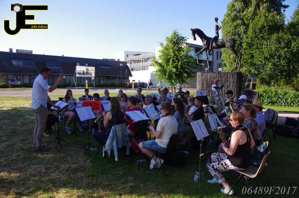 17-06-2017 Tuinstoelenconcert Volharding bij beeld van Biggo in Rhoon