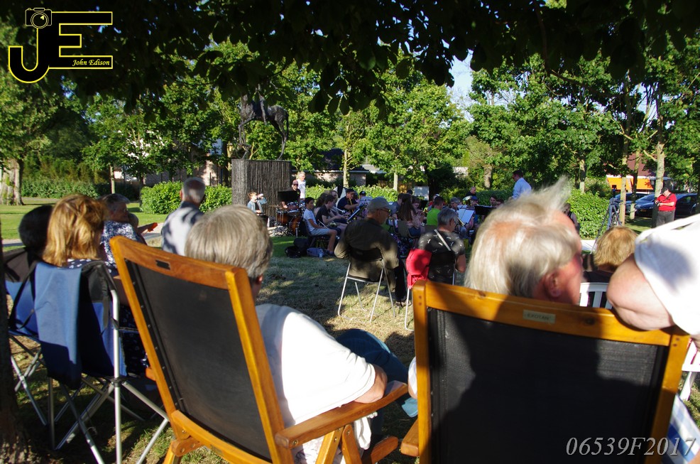 17-06-2017 Tuinstoelenconcert Volharding bij beeld van Biggo in Rhoon