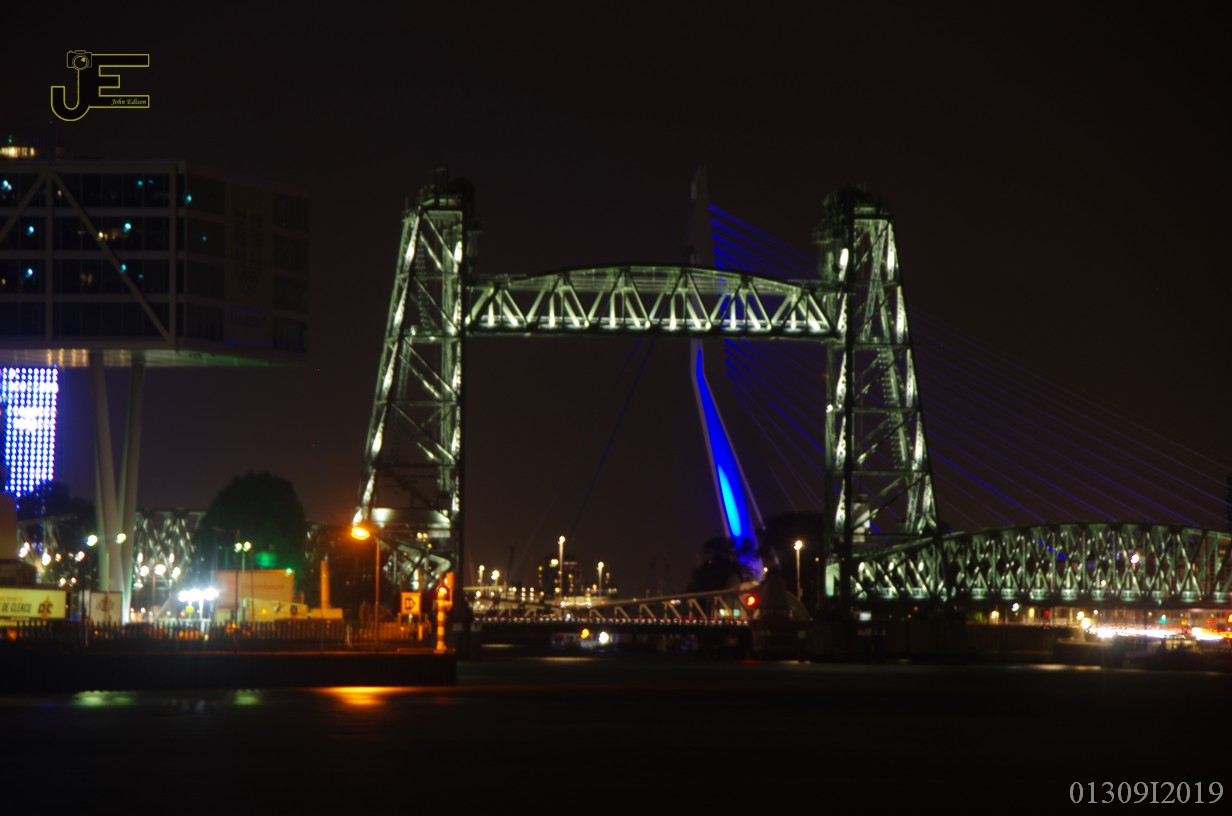 27-09-2019 Rotterdam Willemsbrug, Hef en Erasmusbrug bij nacht