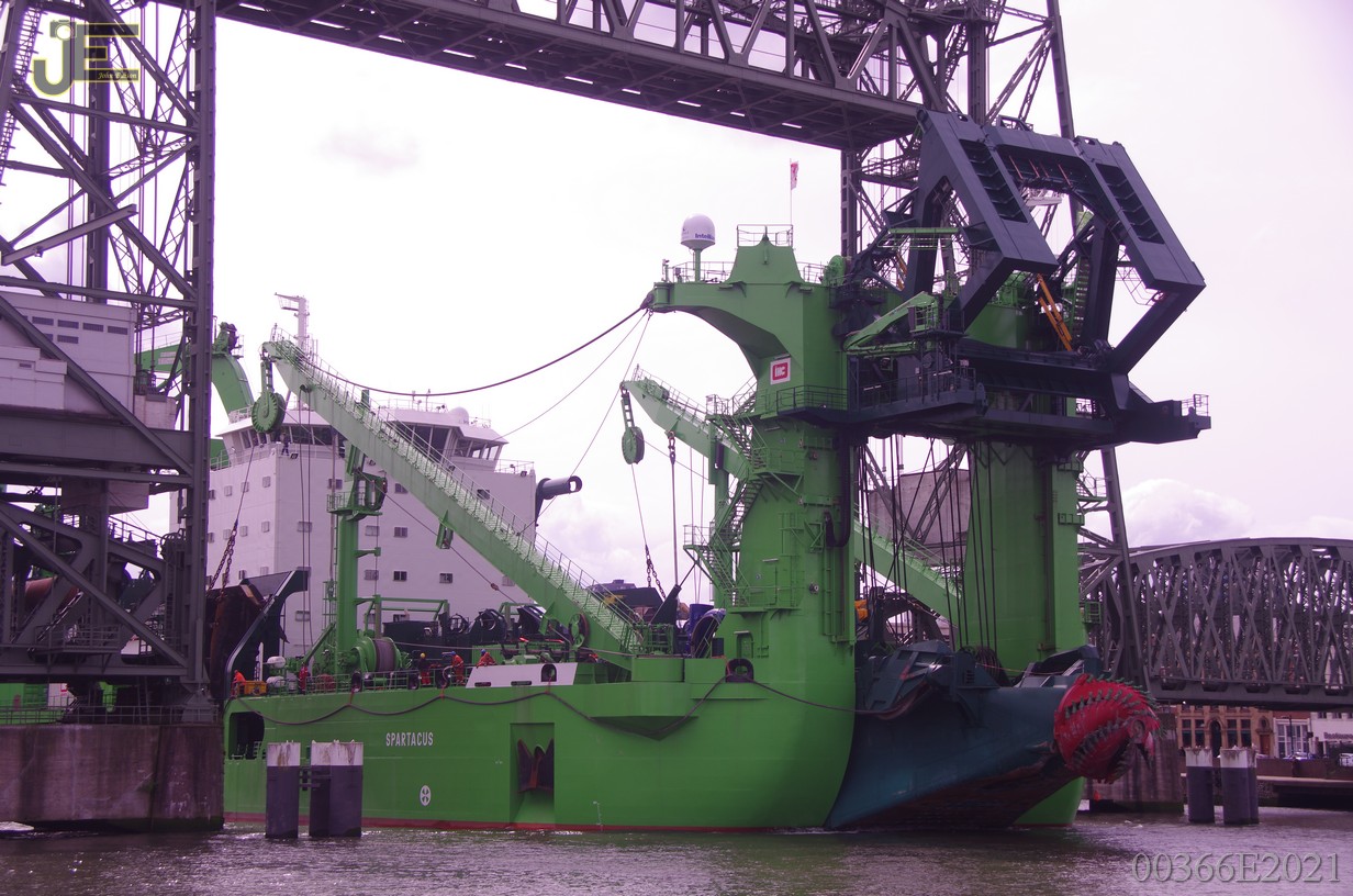 23-05-2021 Spartacus cutterzuiger baggerschip door de Erasmus - Koninginnenbrug en Hef