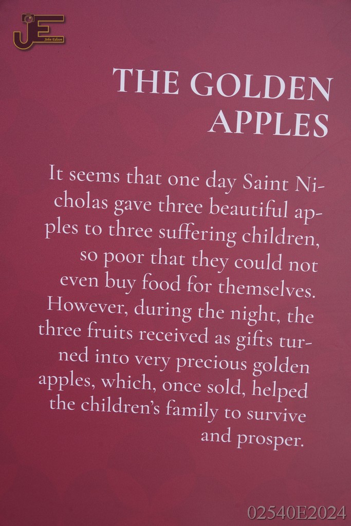08-05-2024 Sint Nicolaas borden op winkelstraat met levensverhaal